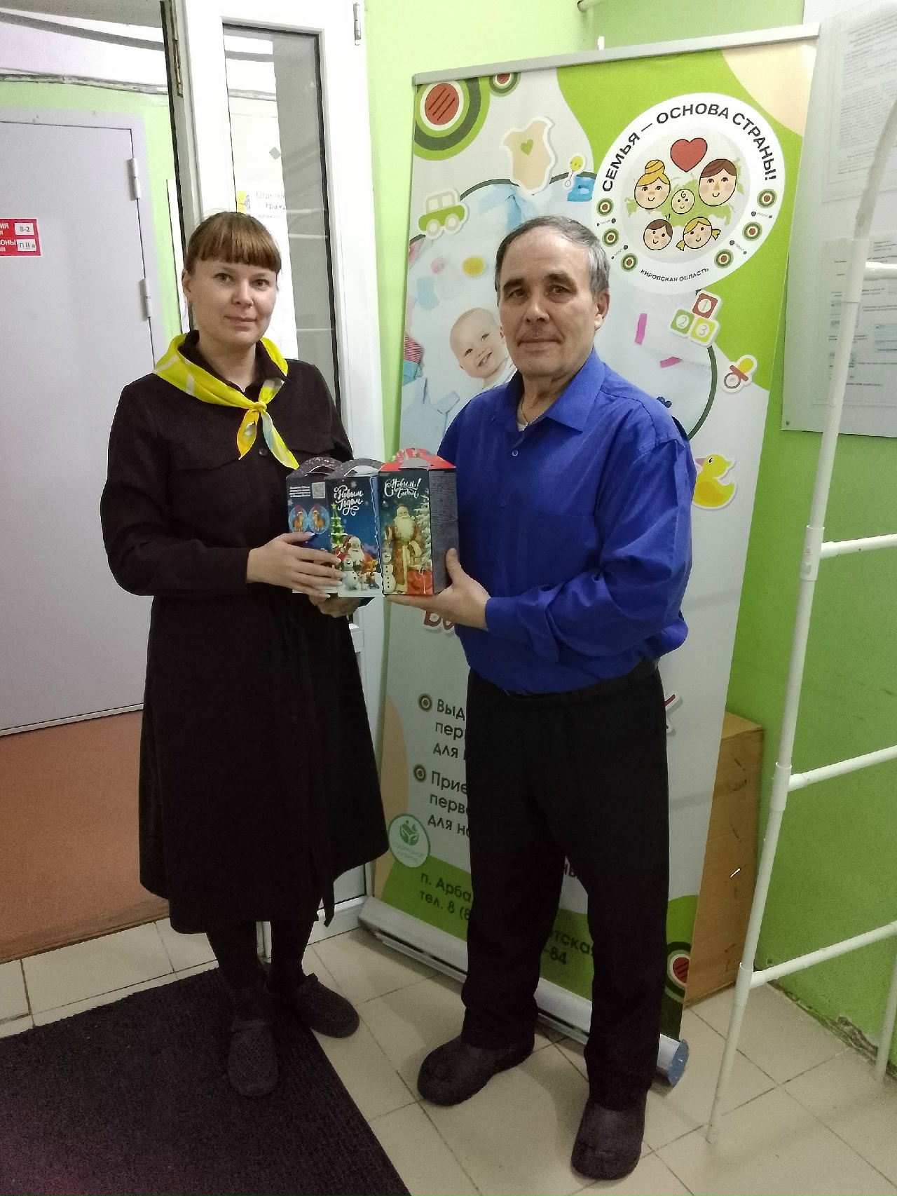 22 декабря председатель местного отделения Партии СПРАВЕДЛИВАЯ РОССИЯ в Арбажском муниципальном округе Владимир Бобров передал новогодние подарки детям, которые занимаются в Кировском областном государственном автономном учреждении социального обслуживания "Межрайонный комплексный центр социальной помощи семье " и которые находятся в трудной жизненной ситуации.