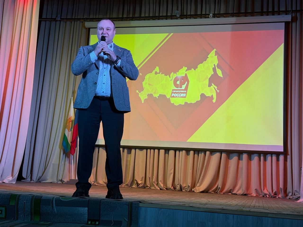 В канун Международного женского дня председатель местного отделения Партии СПРАВЕДЛИВАЯ РОССИЯ в Пижанском районе Юрий Скрипин организовал для местных жителей концерт-поздравление, ставший уже традиционным. Мероприятие состоялось 4 марта в местном Доме культуры и приурочено к Году единства народов России. Концерт начался с Гимна Российской Федерации.