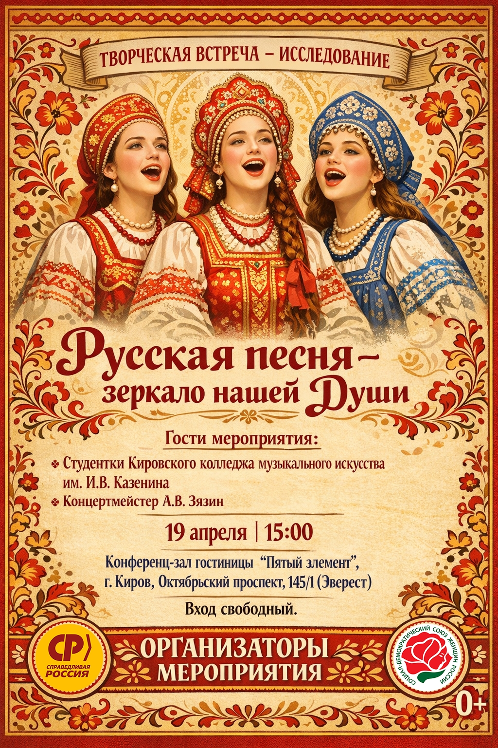 В Год Единства Народов России мы приглашаем вас на особенную творческую встречу - исследование «Русская песня — зеркало нашей души». Это не просто концерт, а возможность вместе прикоснуться к живому источнику народной культуры, услышать сокровенные мелодии и почувствовать, как в них отражается наша общая история.
